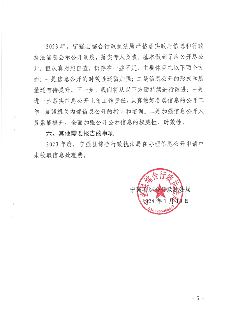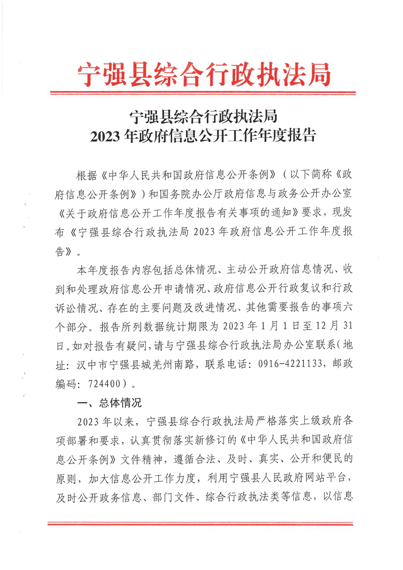 寧強縣綜合行政執法局2023年政府信息公開工作年度報告