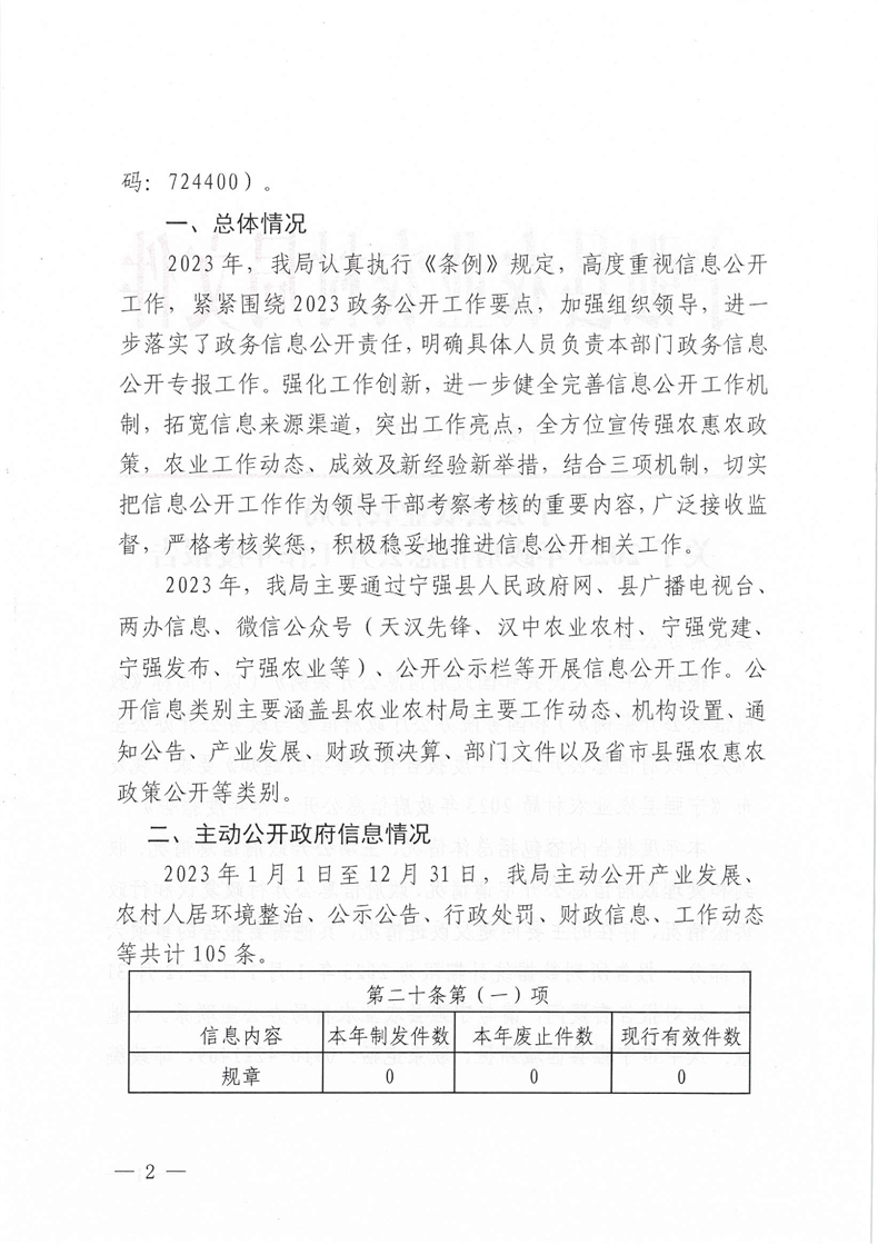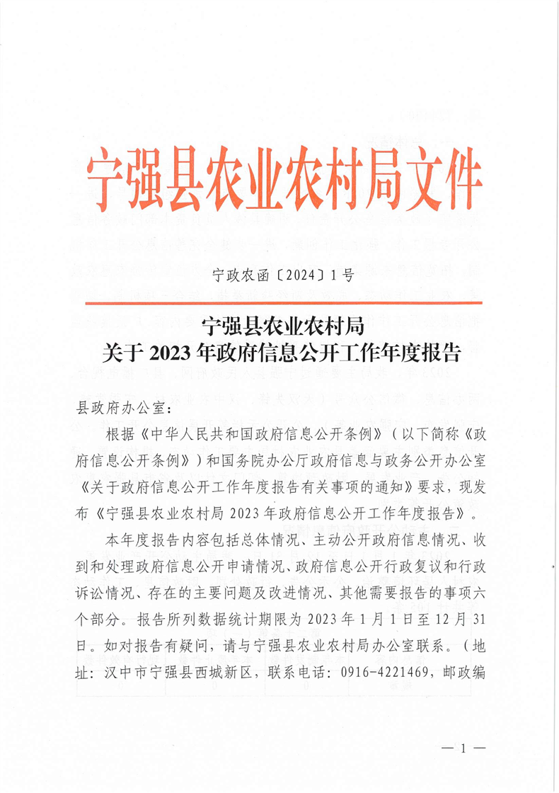 寧強(qiáng)縣農(nóng)業(yè)農(nóng)村局2023年政府信息公開(kāi)工作年度報(bào)告