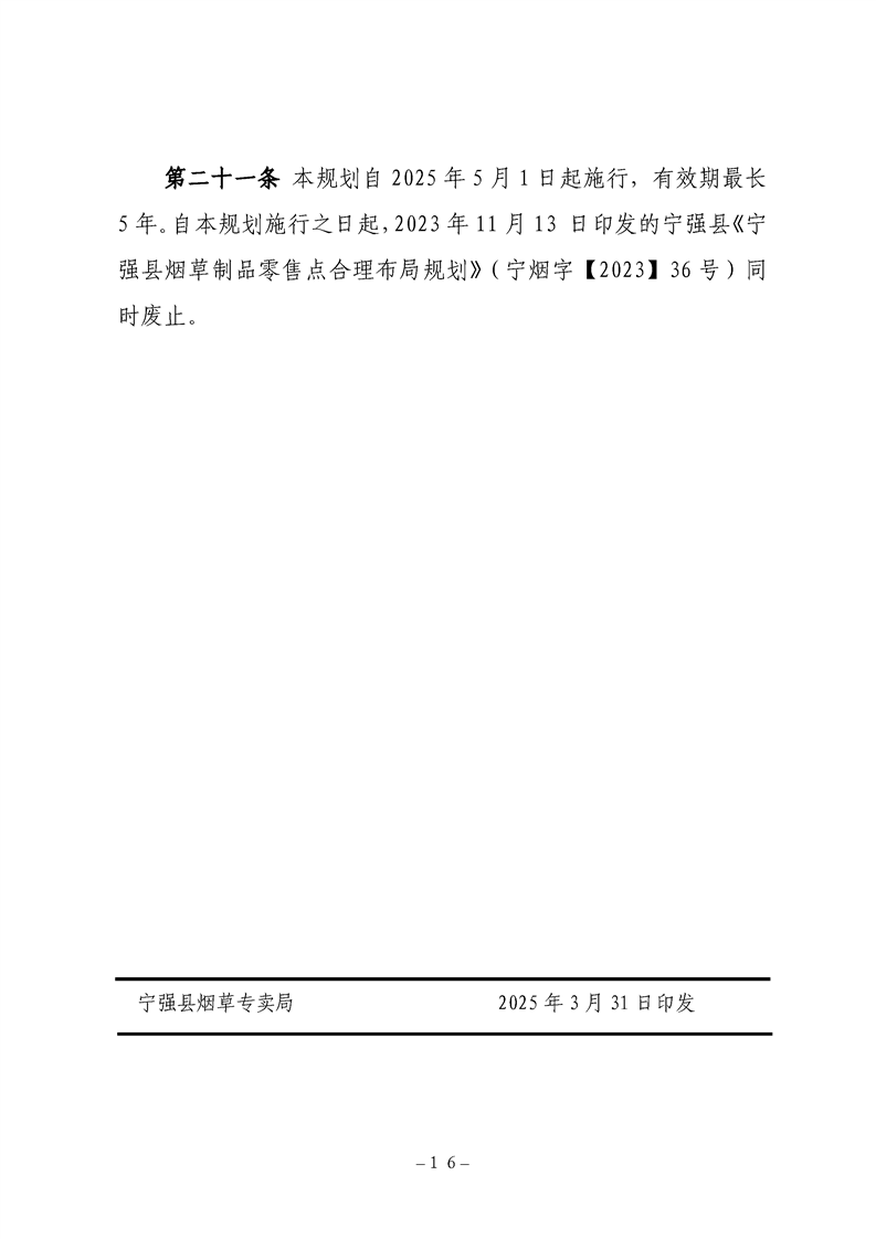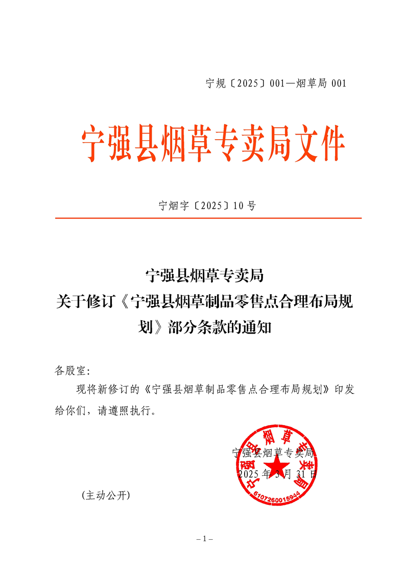 寧強(qiáng)縣煙草專賣局關(guān)于修訂《寧強(qiáng)縣煙草制品零售點(diǎn)合理布局規(guī)劃》部分條款的通知