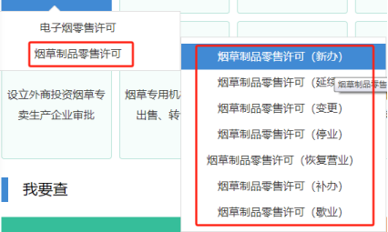 ②網上操作流程:登錄國家煙草專賣局→點擊辦事服務→煙草專賣零售許可→煙草制品零售許可→選擇需辦理業務→在線辦理
