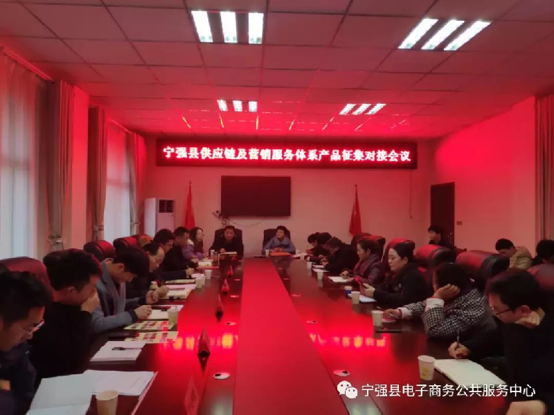12月31日,寧強縣供應鏈及營銷服務體系產品征集對接會議在經貿局四樓會議室召開,寧強電商辦主任鄭俠主持,電子商務進農村綜合示范項目各承辦企業、寧強縣15家相關企業參加會議。
