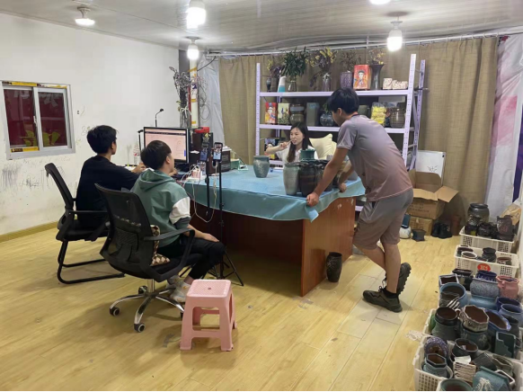 公司董事長王寧是一位大山里走出來的90后青年,干過個體工商,學習過雕刻,創立過婚慶公司,一路摸爬滾打,起起落落。2016年因婚慶公司經營不善倒閉,背負一身債務,背井離鄉外出務工。來到有著“中國陶都”之美譽——宜興,從事陶瓷制作。雖然是務工,但他從沒放棄過想涅槃重生的渴望。機會總是留給有準備的人,一個偶然的機會與直播銷售結下了不解之緣。從直播間只有一個粉絲,沒有資金囤貨,就從當地工廠買一件賣一件,直播、進貨、打包、發貨、一條“流水線”就自己一個人干,成為了淘寶直播花盆行業的第一人,并以半天銷售2.8萬元的業績成為花盆直播界的一匹“黑馬”。短短兩年時間不僅還清了全部債務,還有了一定的積蓄。