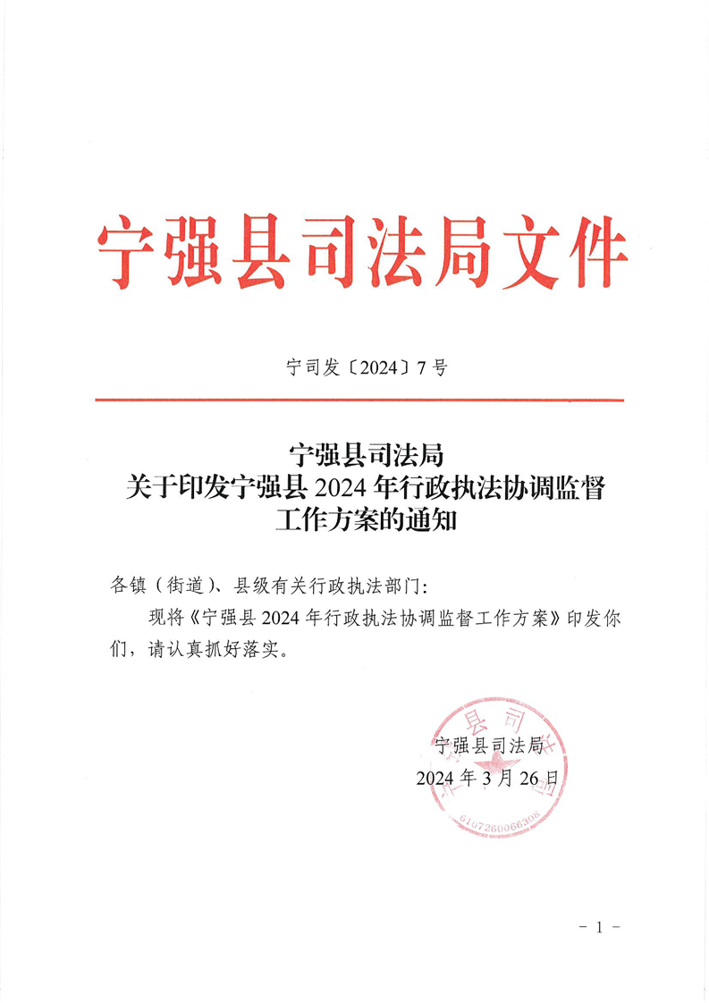 寧強縣司法局關于印發《寧強縣2024年行政執法監督協調工作方案》的通知