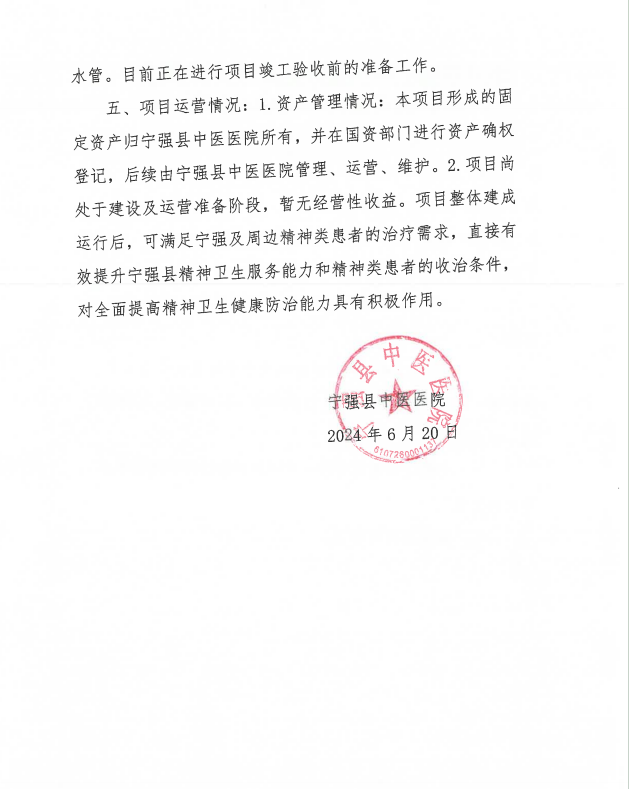 寧強(qiáng)縣中醫(yī)醫(yī)院精神衛(wèi)生中心專項(xiàng)債券項(xiàng)目存續(xù)期信息公開
