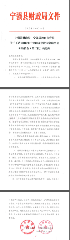 關于下達2018年中等職業學校國家助學金補助資金(第二批)的通知