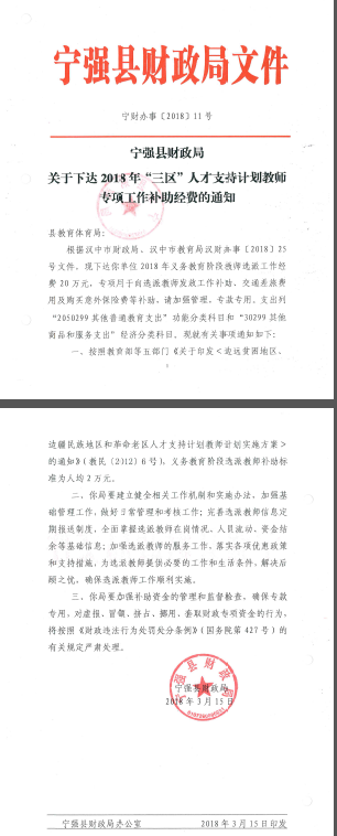 關于下達2018年“三區”人才支持計劃教師專項工作補助經費的通知