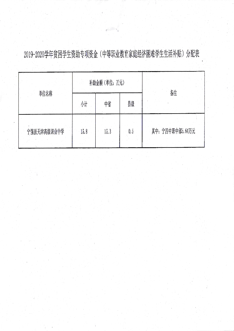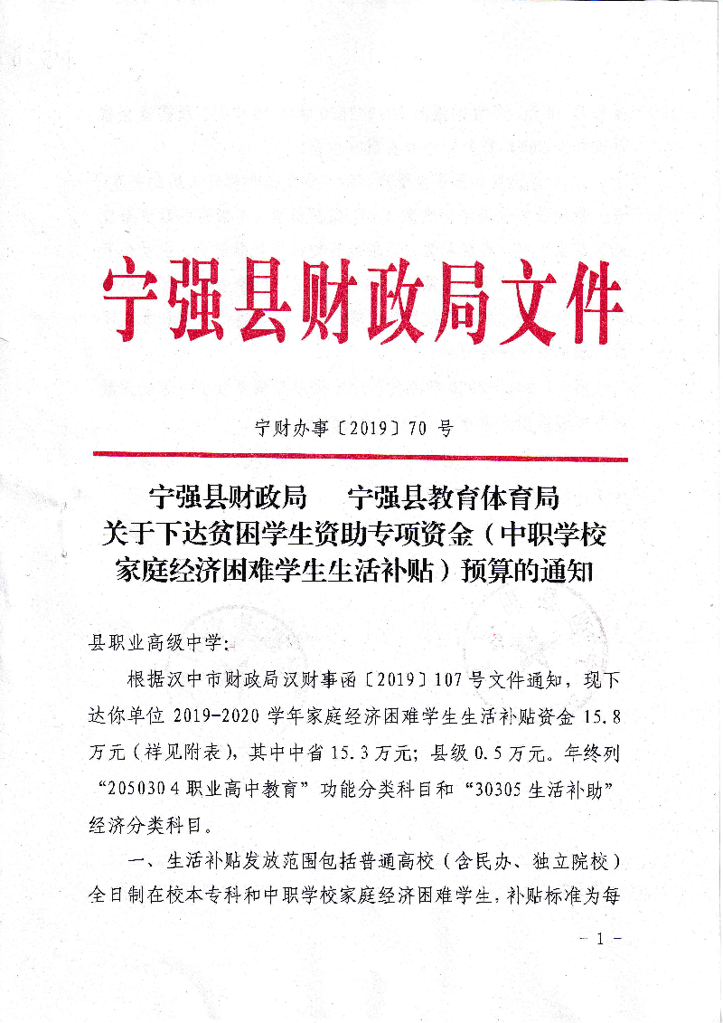 關于下達貧困學生資助專項資金(中職學校家庭經濟困難學生生活補貼)預算的通知