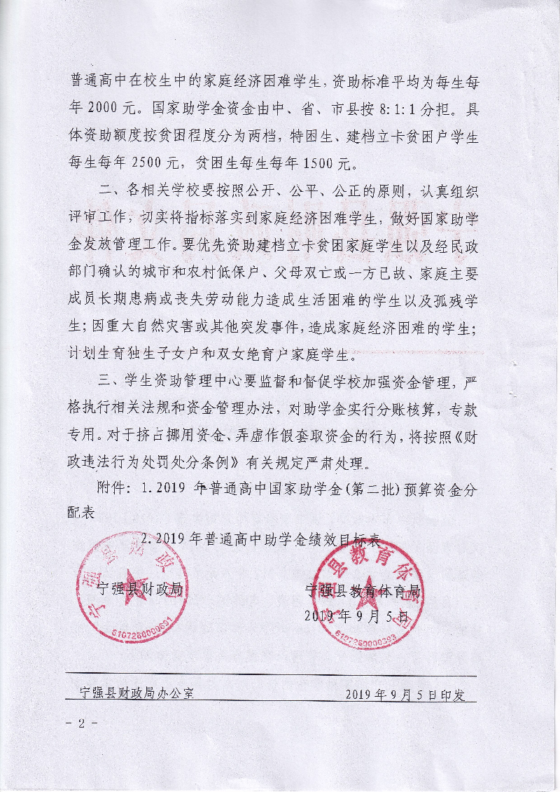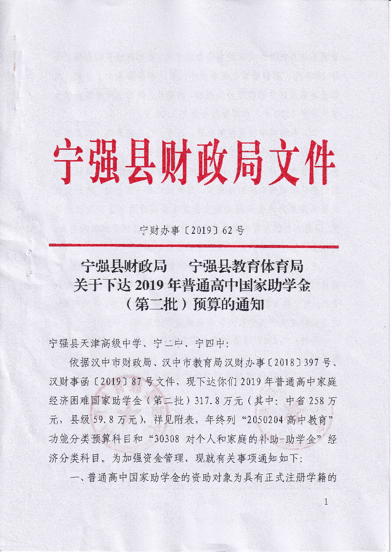 關(guān)于下達(dá)2019年普通高中國(guó)家助學(xué)金(第二批)預(yù)算的通知