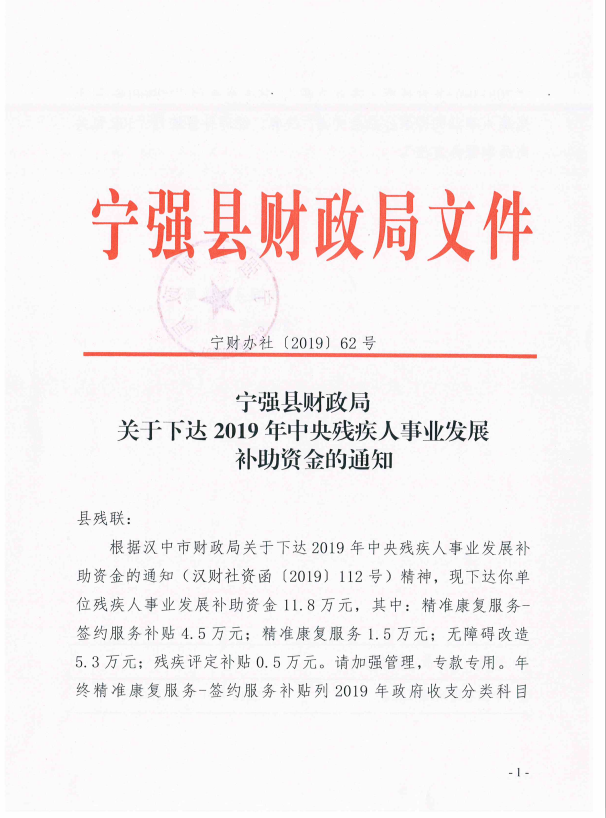 關于下達2019年中央殘疾人事業發展補助資金的通知