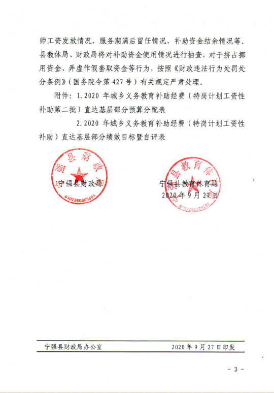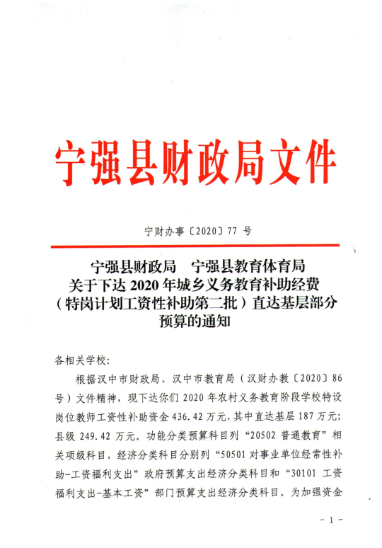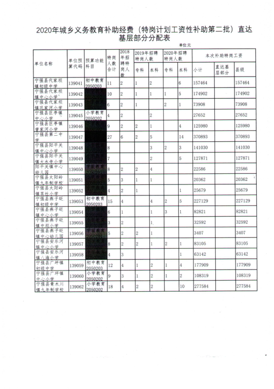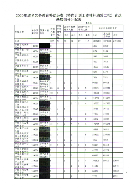 關于下達2020年城鄉(xiāng)義務教育補助經(jīng)費(特崗計劃工資性補助第二批)直達基層部分預算的通知