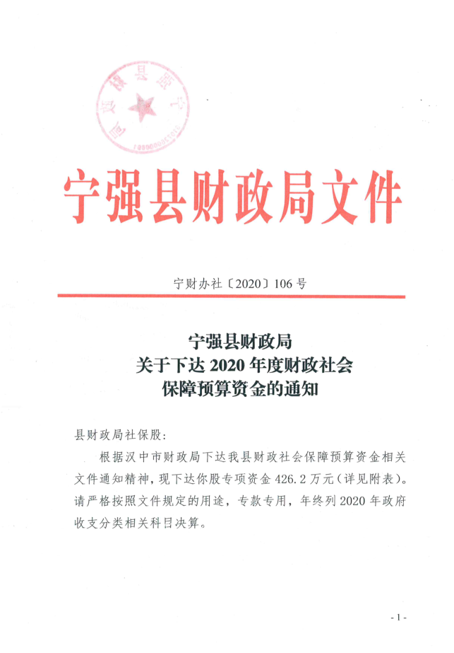 關(guān)于下達2020年財政社會保障預(yù)算資金的通知