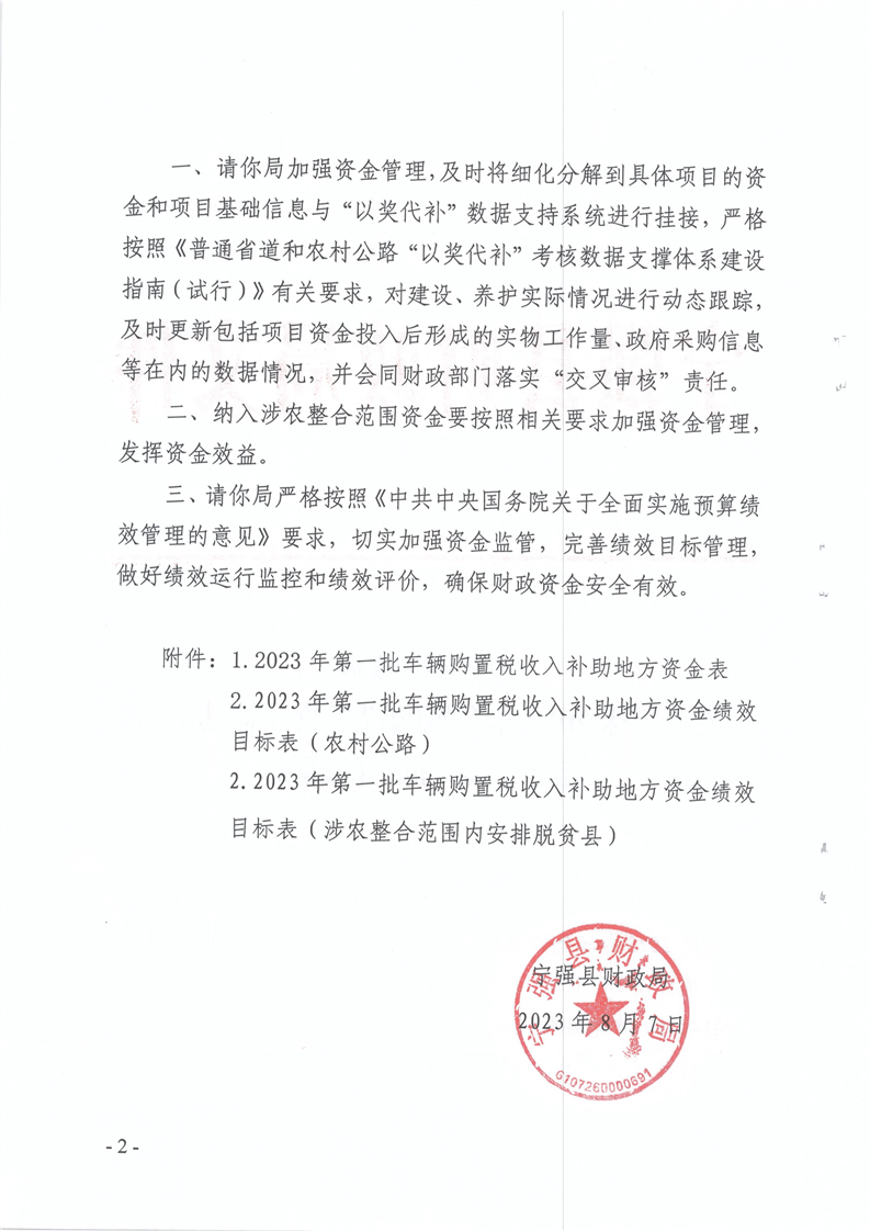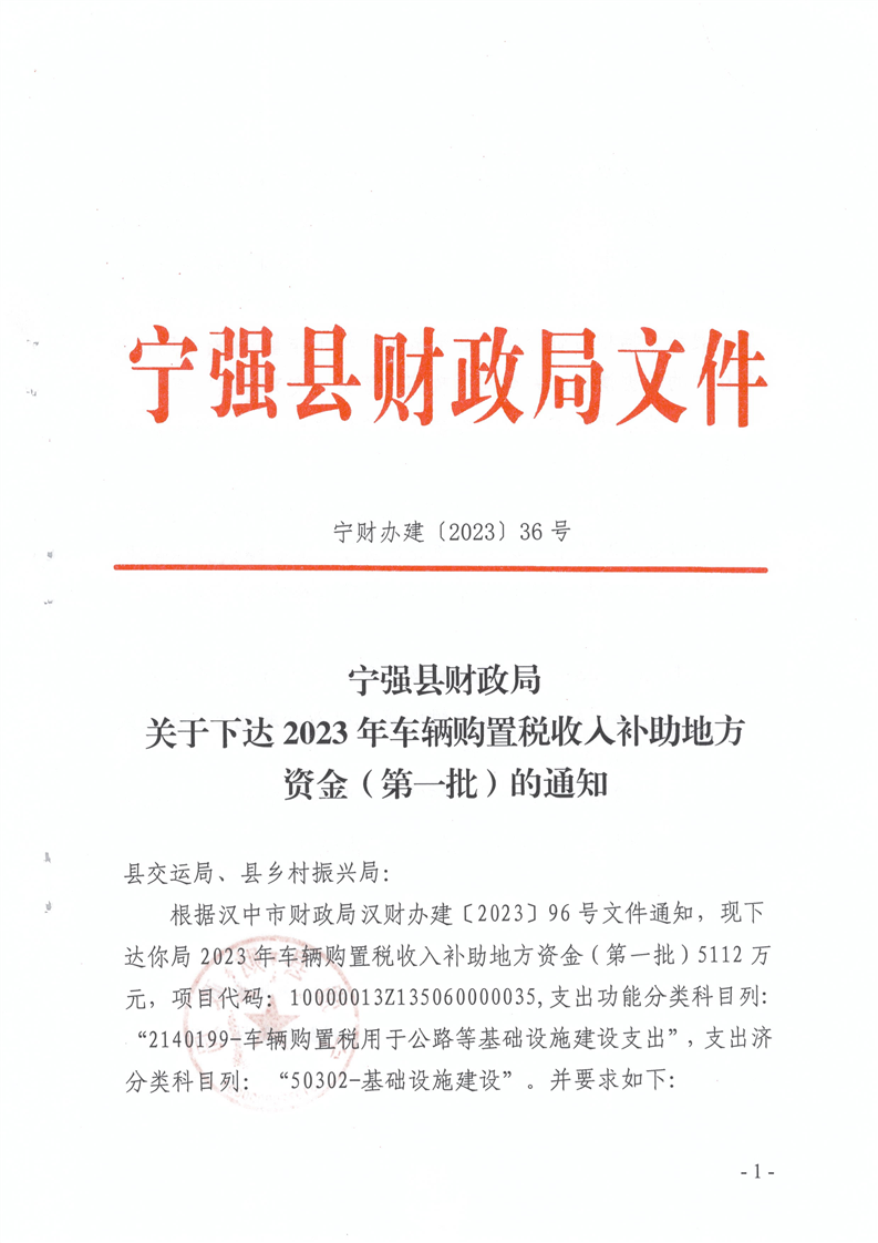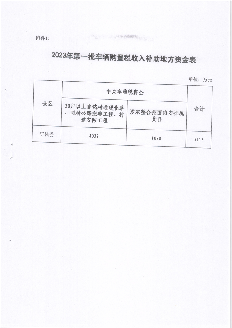 關于下達2023年車輛購置稅收入補助地方資金(第一批)的通知