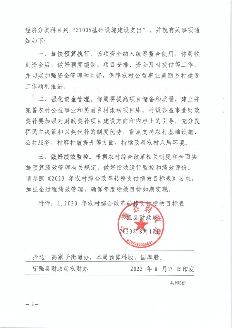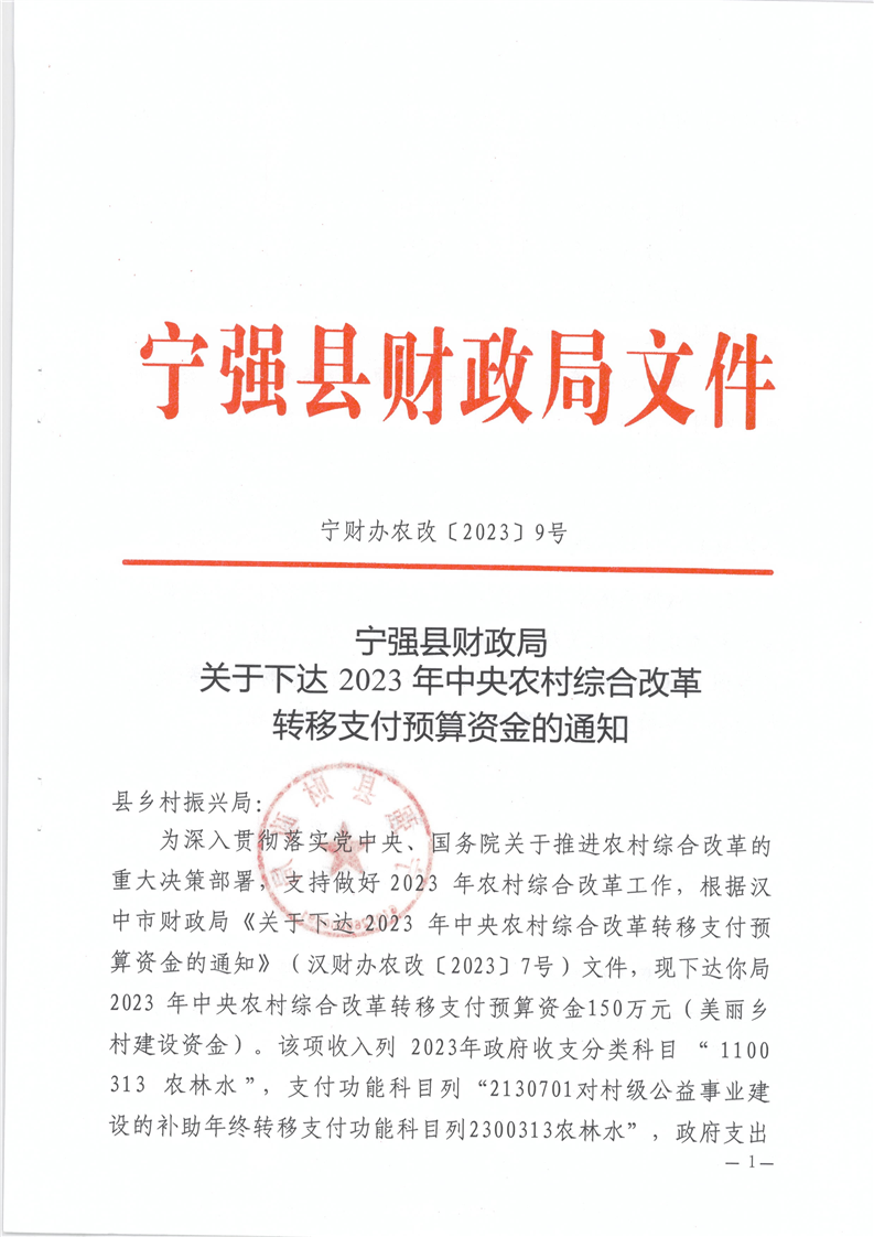 關于下達2023年中央農村綜合改革轉移支付(美麗鄉村建設)預算資金的通知