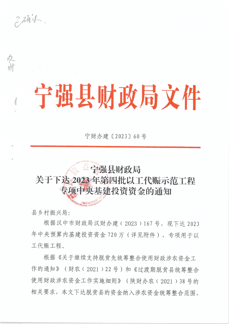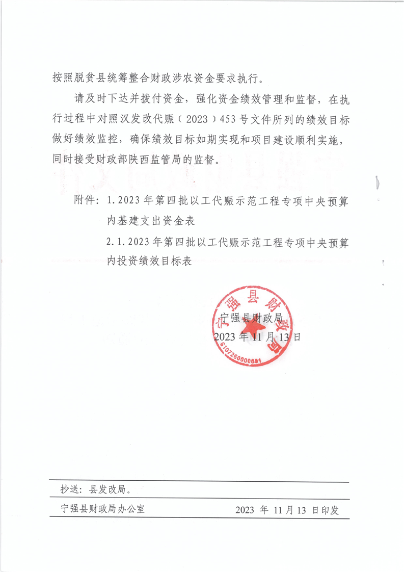 關于下達2023年第四批以工代賑示范工程專項中央基建投資資金的通知