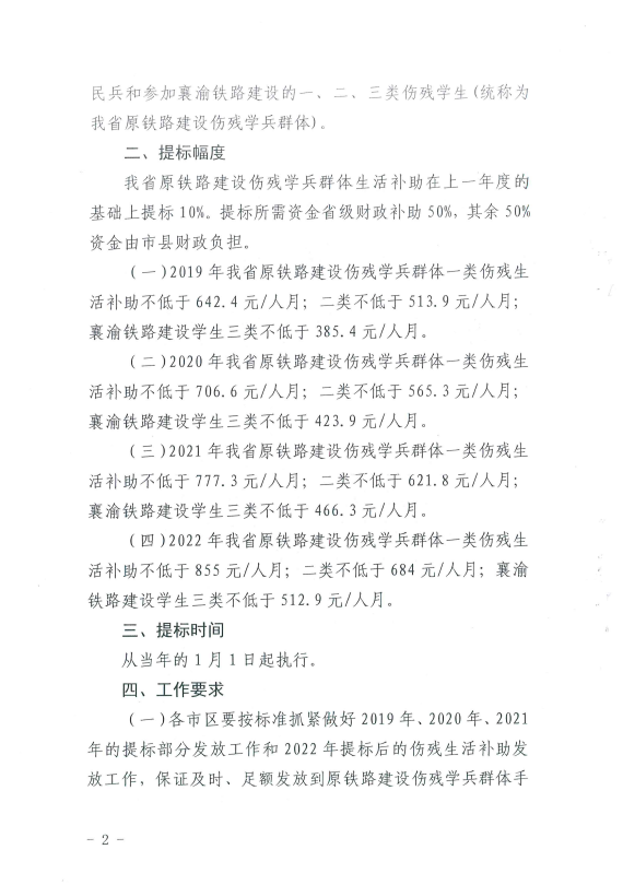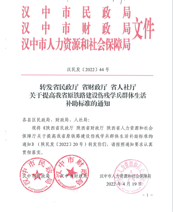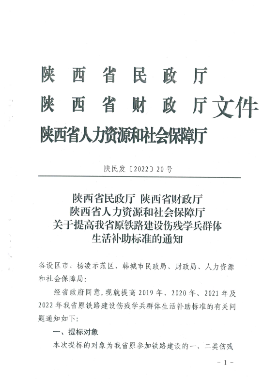 轉(zhuǎn)發(fā)省民政廳 省財政廳 省人社廳 關(guān)于提高我省原鐵路建設(shè)傷殘學兵群體生活補助標準的通知