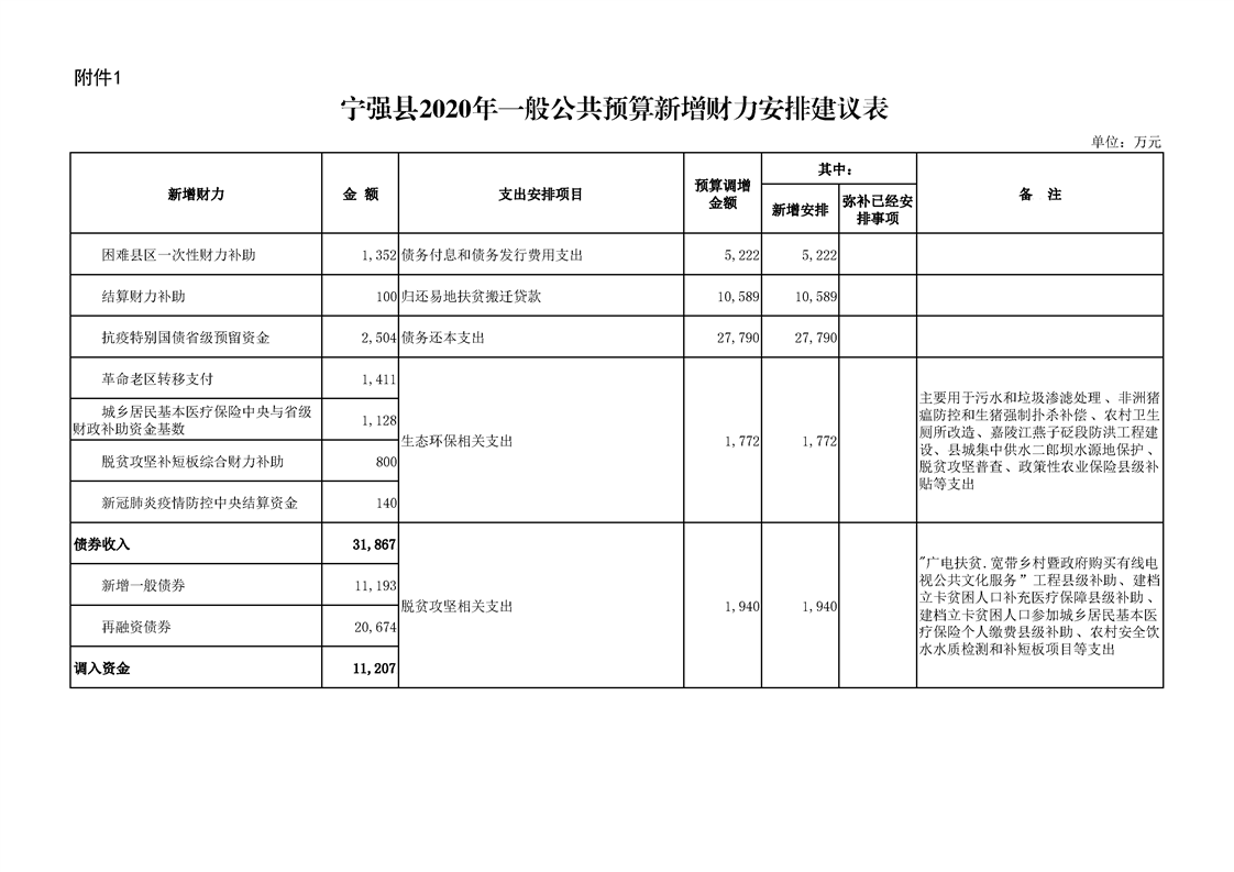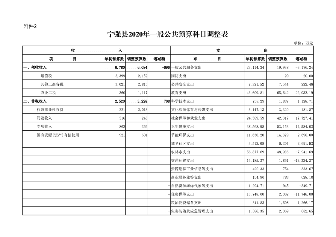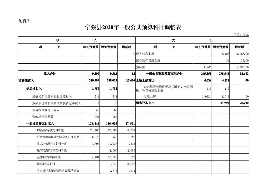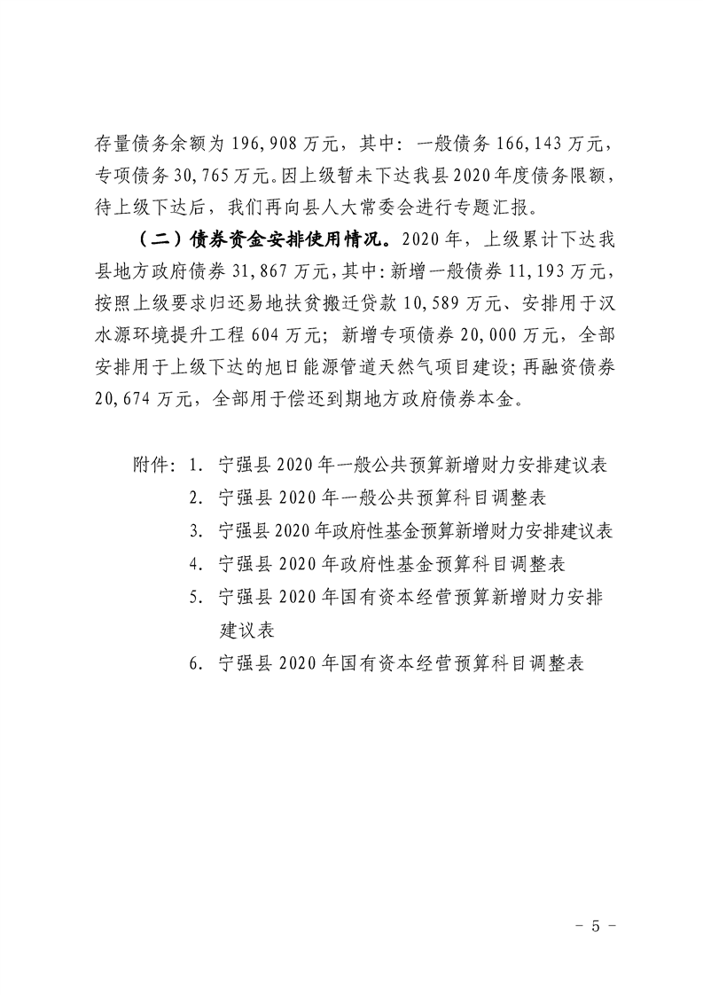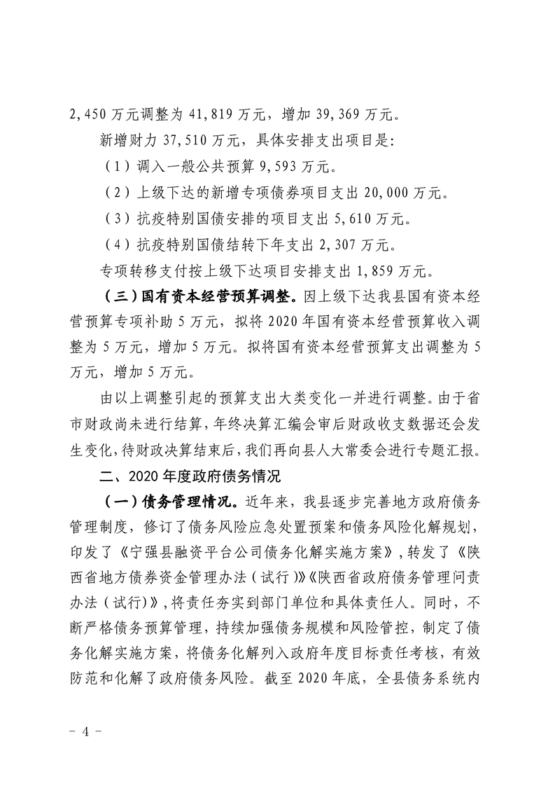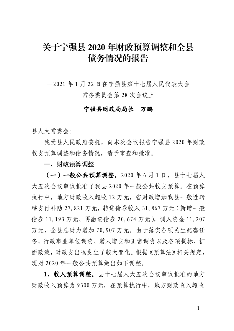 關于寧強縣2020年財政預算調整和全縣債務情況的報告