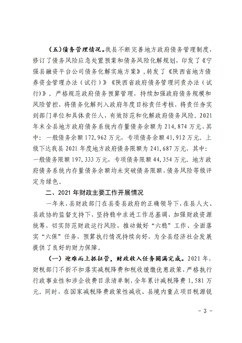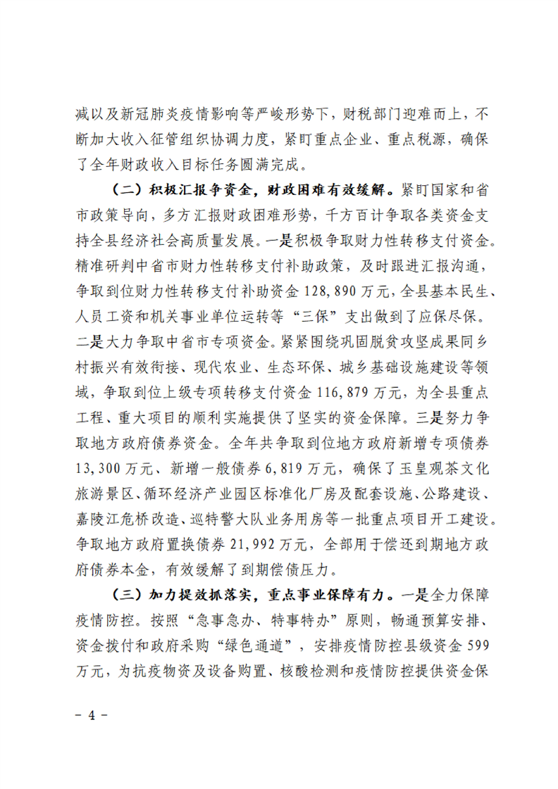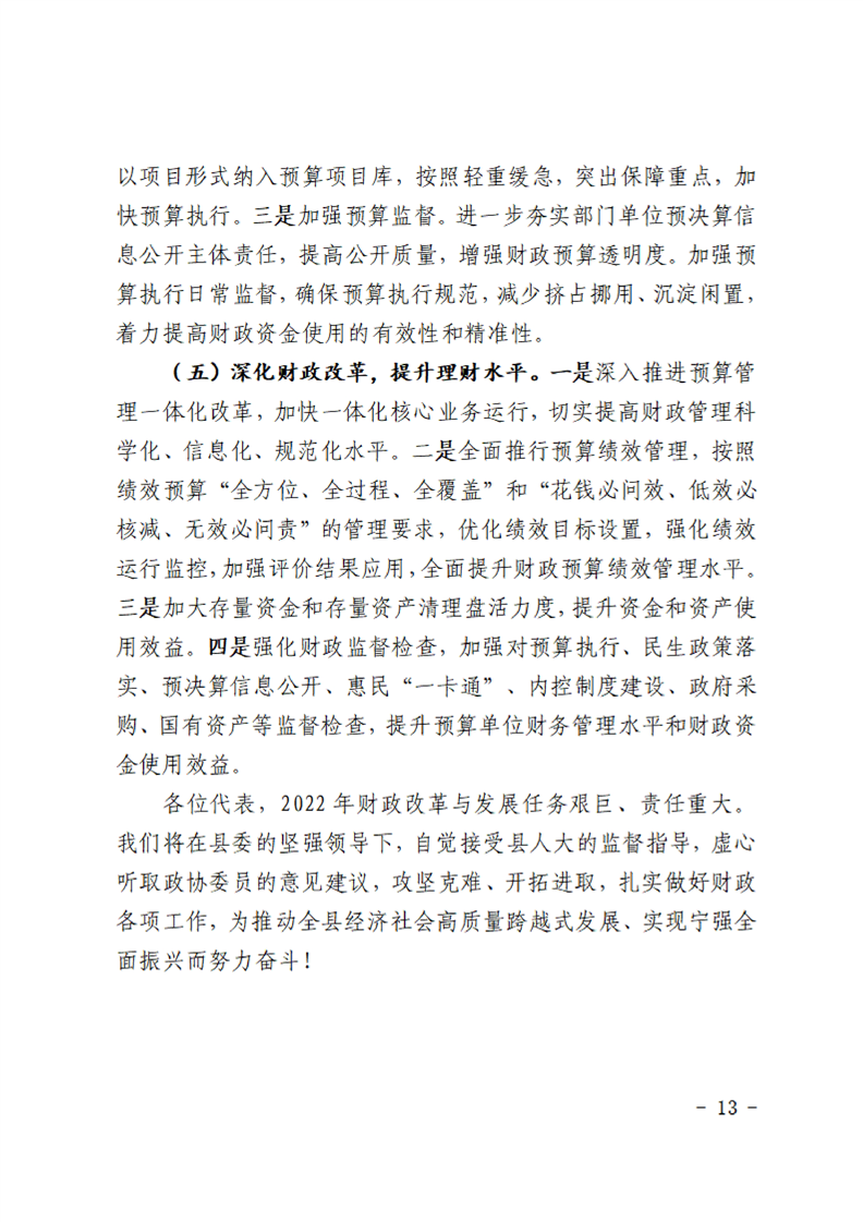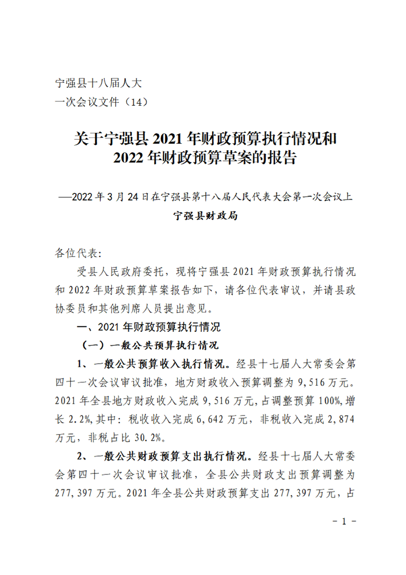 寧強縣2021年財政預算執行情況和2022年財政預算草案的報告