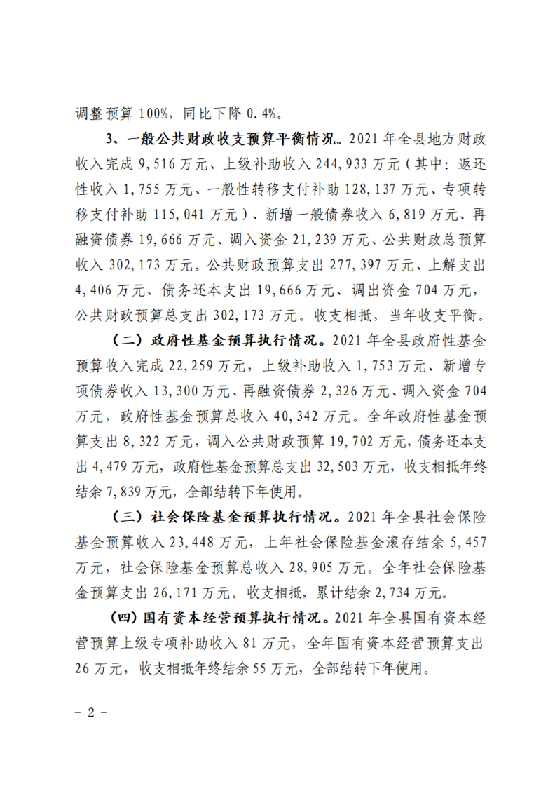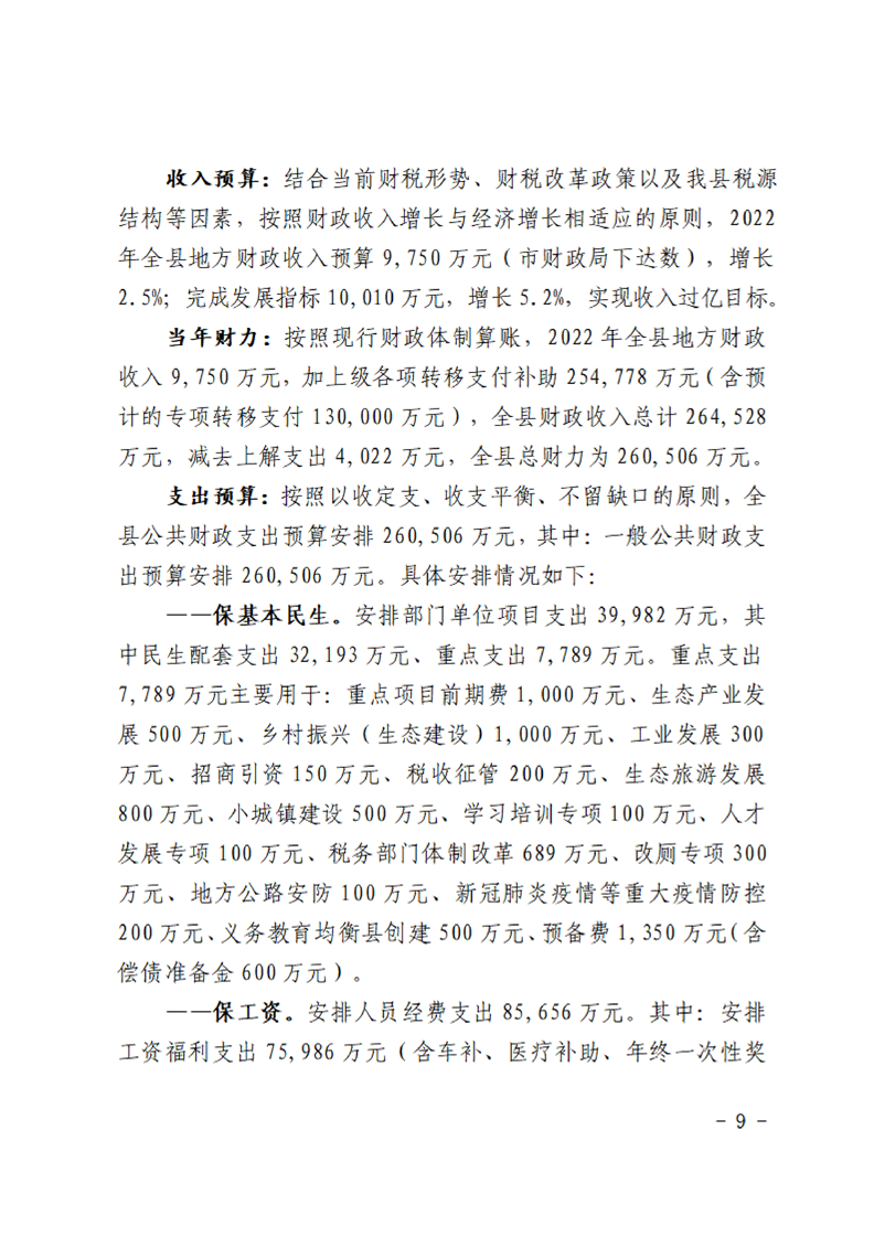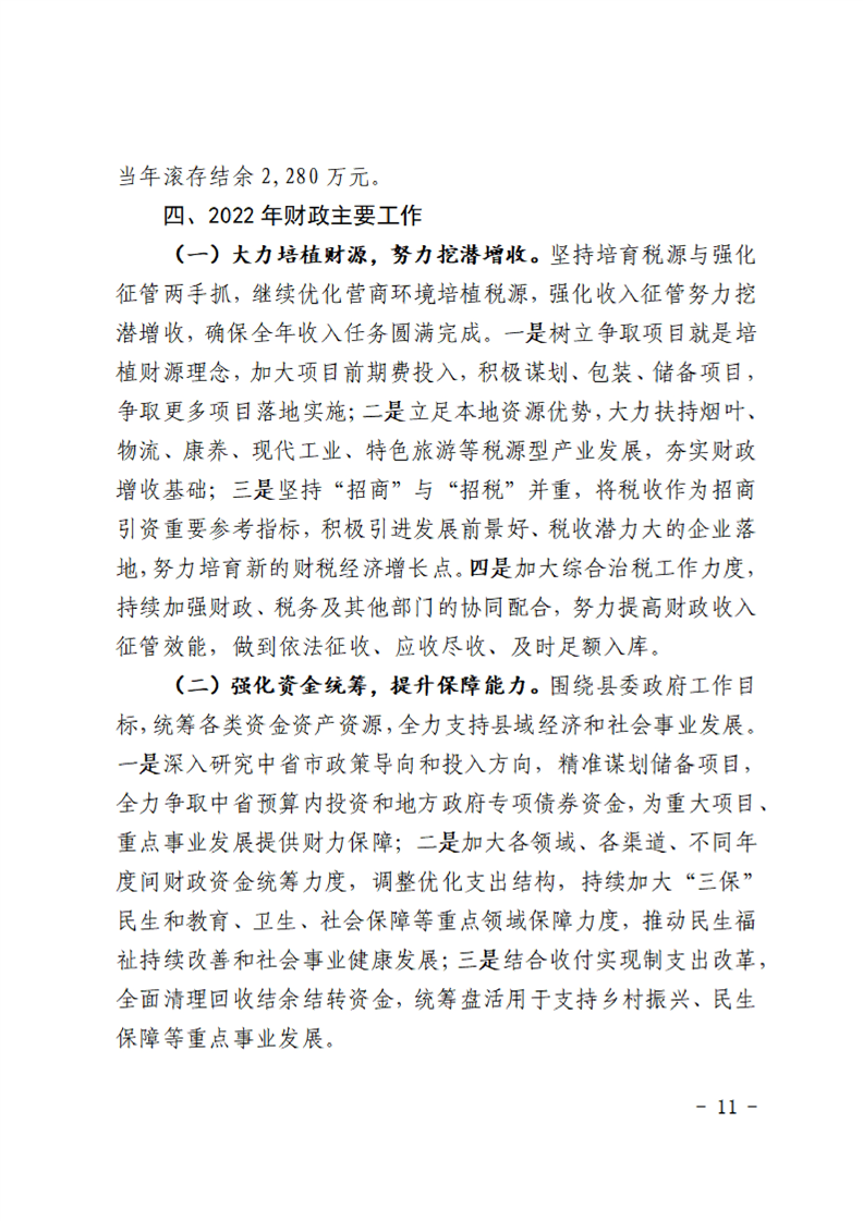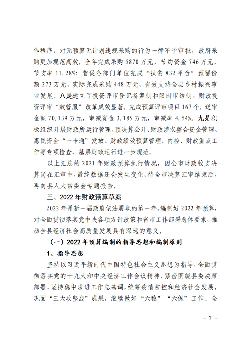 寧強縣2021年財政預算執行情況和2022年財政預算草案的報告
