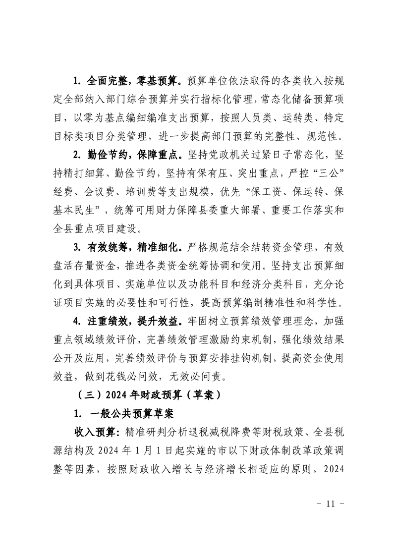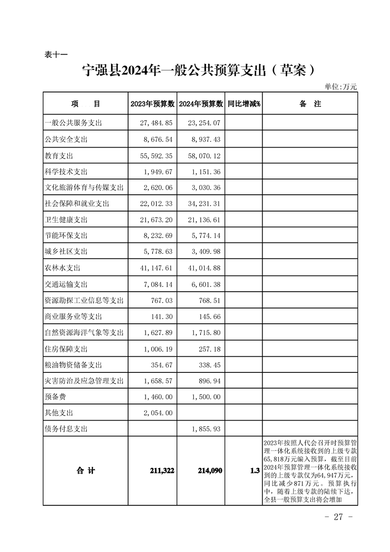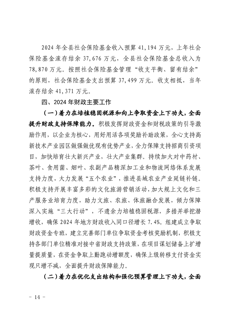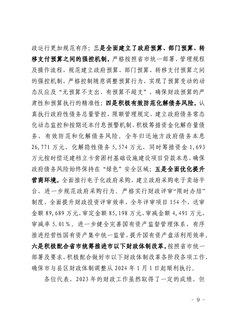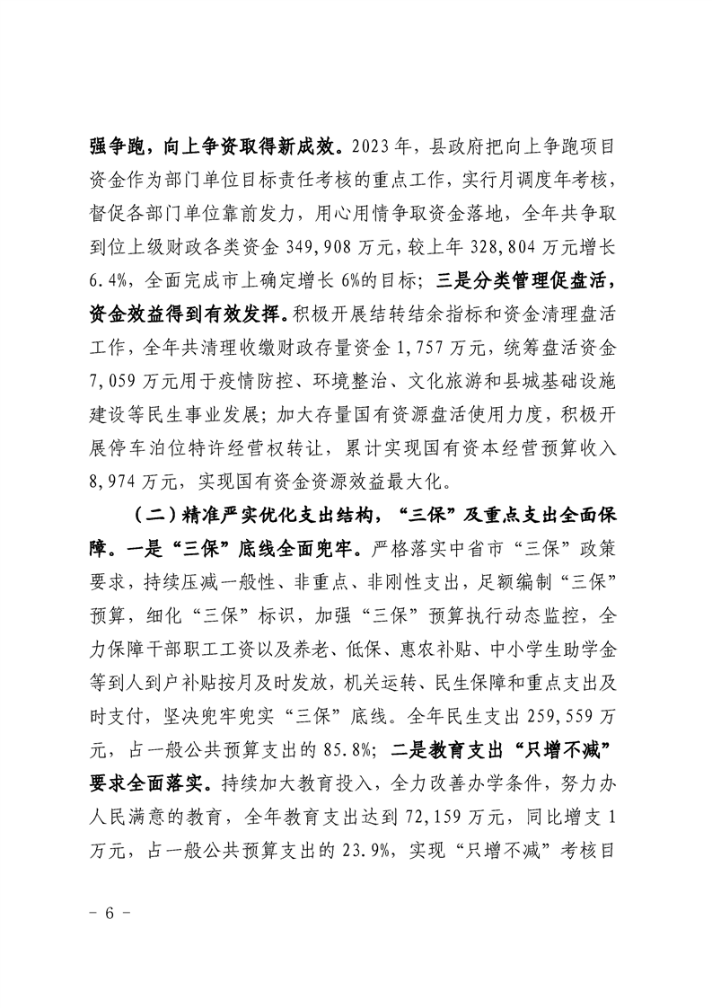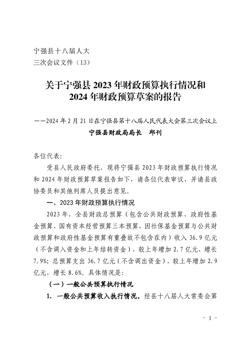 寧強縣2023年財政預算執行情況和2024年財政預算草案的報告