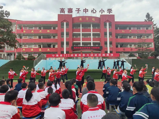 高寨子中心小學聯合縣老體協柔力球隊、健身球隊、太極協會隊員舉辦“慶重陽”柔力球進校園活動。縣老年體育協會、縣關工委、縣教體局相關負責人蒞臨現場,與全校師生共同見證這場跨越年齡的活力碰撞。
