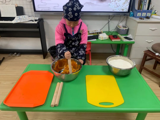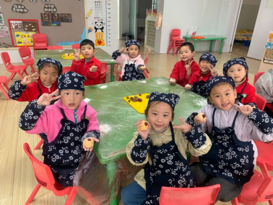 最熱鬧的是大班制作的“南瓜糯米糕”,孩子們在老師指導下蒸南瓜、磨糯米粉、和面、擺大棗。當熱氣騰騰的糕點端上桌,軟糯清甜里滿是孩子的心意。