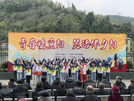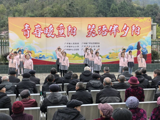 廣坪鎮中心小學組織三至五年級的師生代表,前往廣坪鎮敬老院開展重陽節慰問活動。