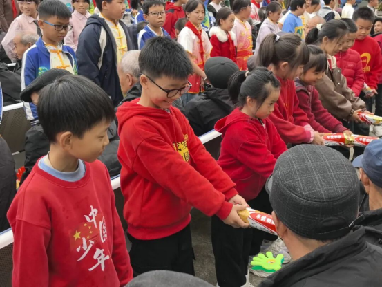 佩戴著鮮艷紅領巾的隊員們手提新鮮水果、糕點,懷揣親手制作的愛心賀卡,準備了豐富多彩的文藝節目,整條街道都洋溢著溫暖的氛圍。