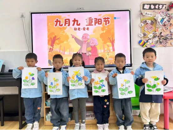 通過精美的圖片和動畫,老師們為孩子們介紹了重陽節的由來和習俗。孩子們知道了重陽節也叫“老人節”,是一個尊老、敬老、愛老、助老的節日。