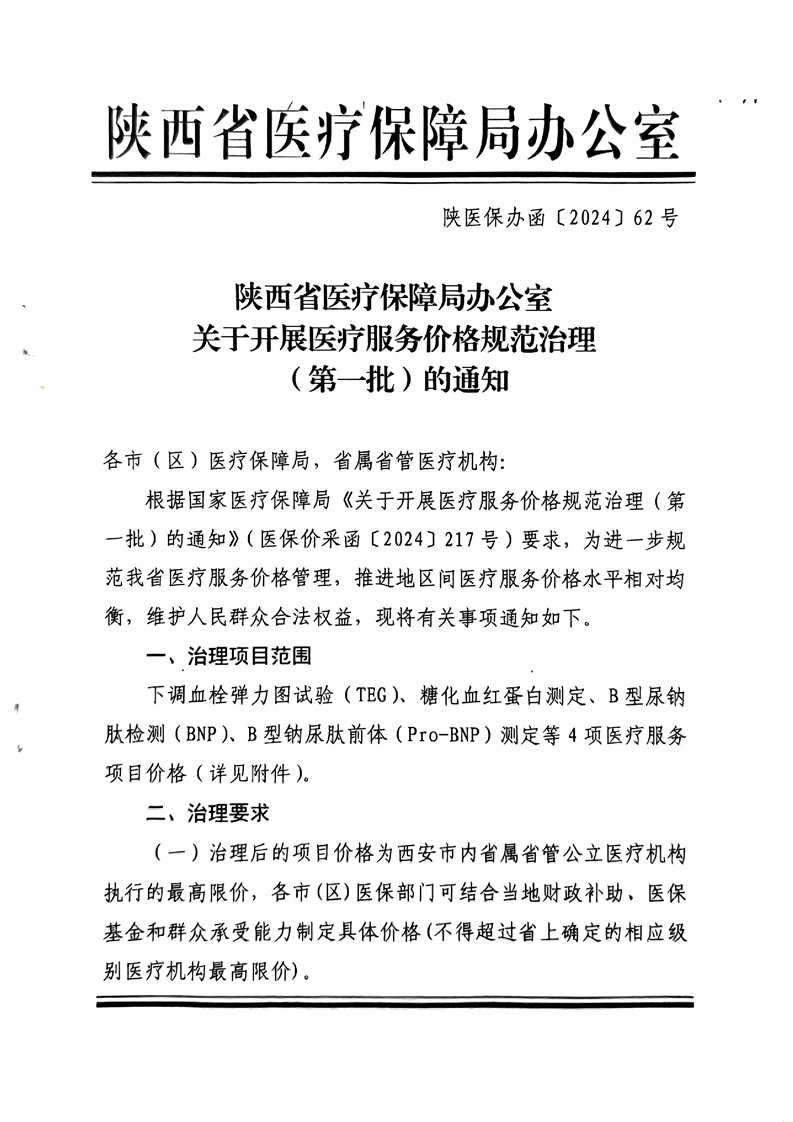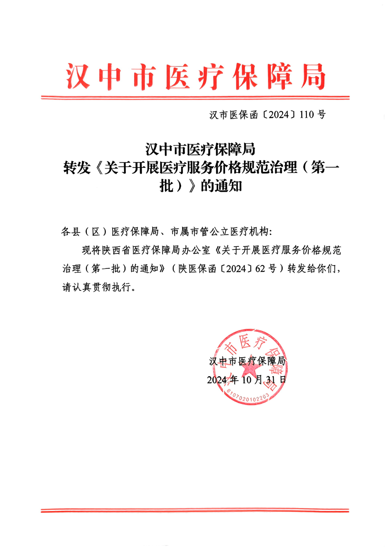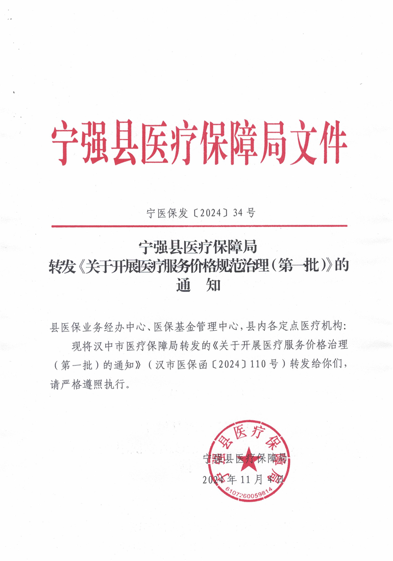 寧強縣醫療保障局轉發《關于開展醫療服務價格規范治理(第一-批)》的通知