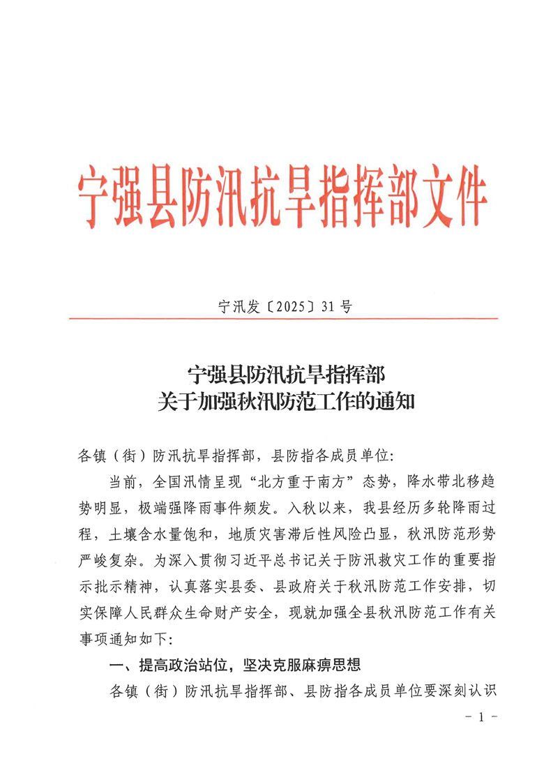 關于加強秋汛防范工作的通知
