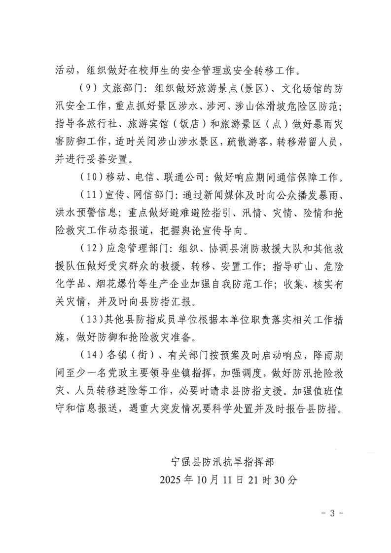 寧汛電【2025】16號關于啟動縣級防汛四級應急響應的通知
