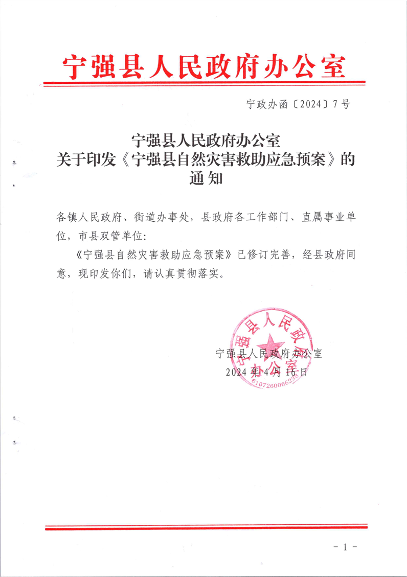 寧政辦函7號(hào)自然災(zāi)害救助應(yīng)急預(yù)案