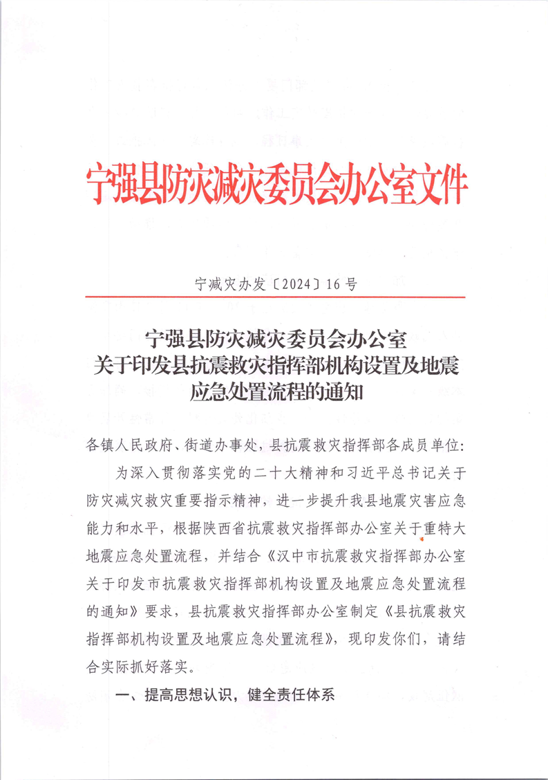 寧減災辦發(fā)【2024】16號關于印發(fā)縣抗震救災指揮部機構(gòu)設置及地震應急處置流程的通知