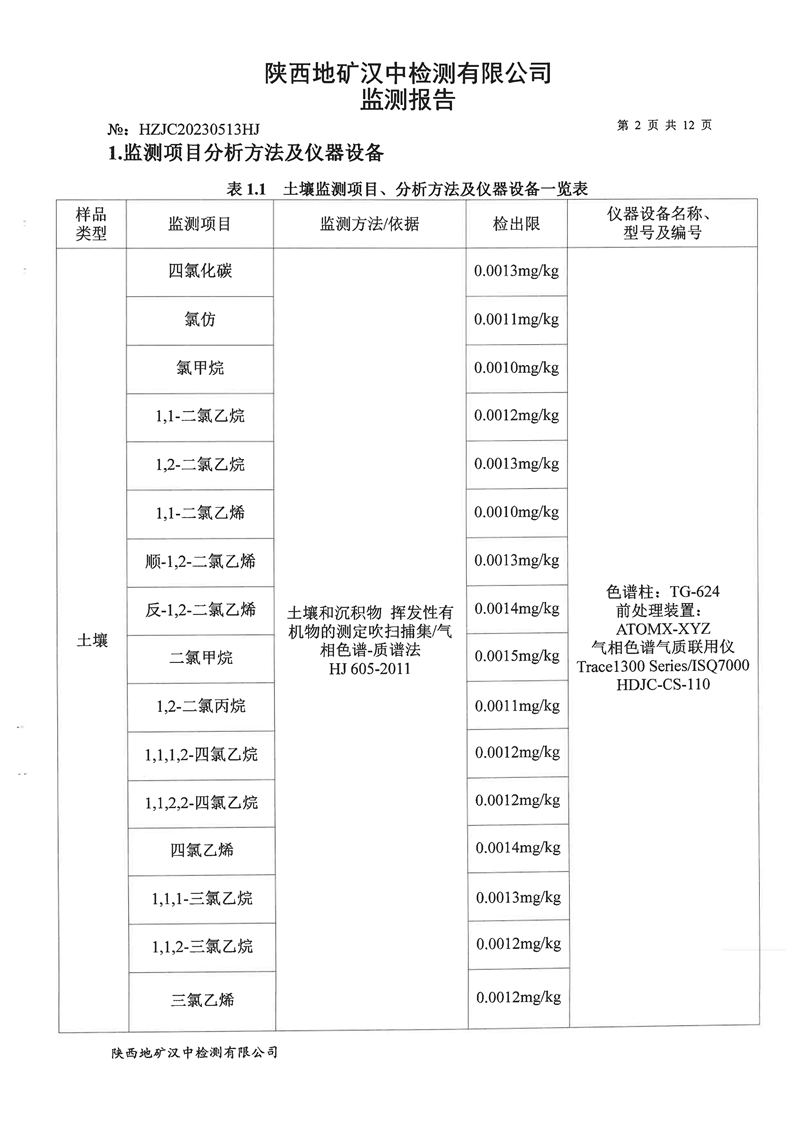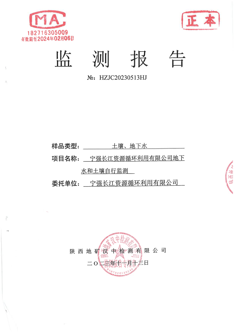 寧強長江資源循環(huán)利用有限公司土壤和地下水監(jiān)測報告