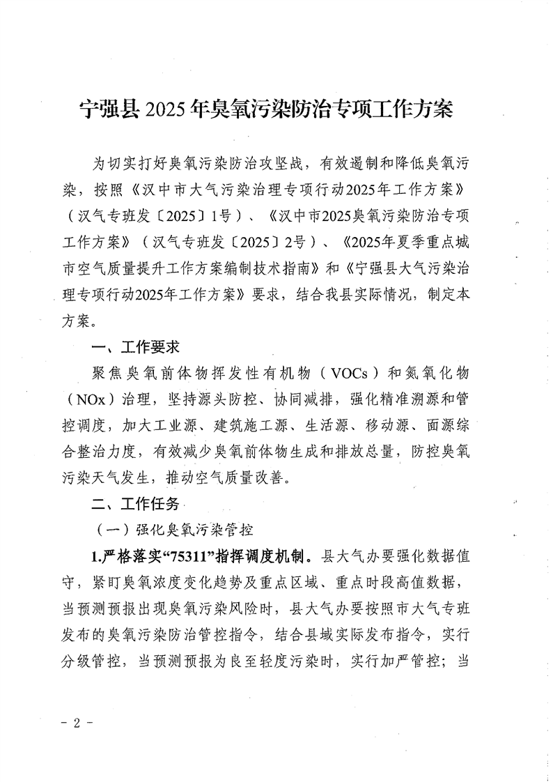 關(guān)于印發(fā)寧強縣2025年臭氧污染防治專項工作方案的通知