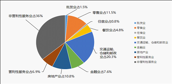 圖1:前三季度第三產(chǎn)業(yè)內(nèi)各行業(yè)占比情況