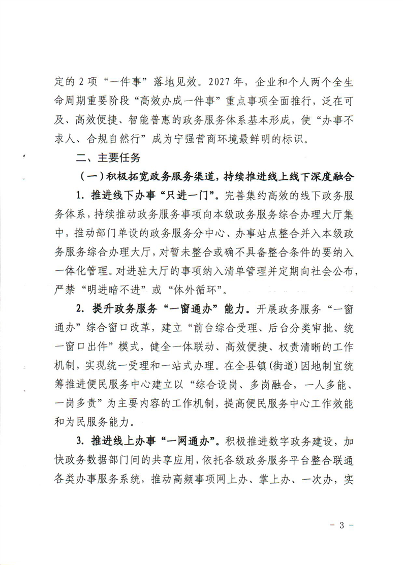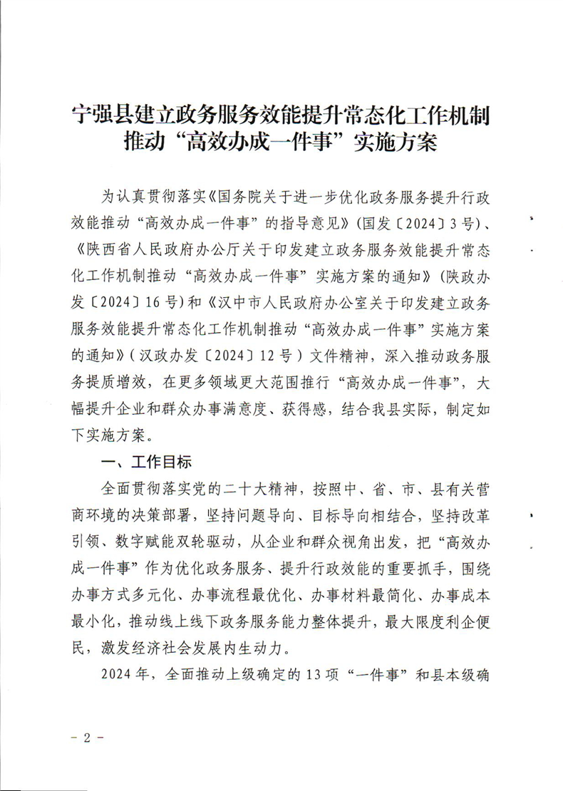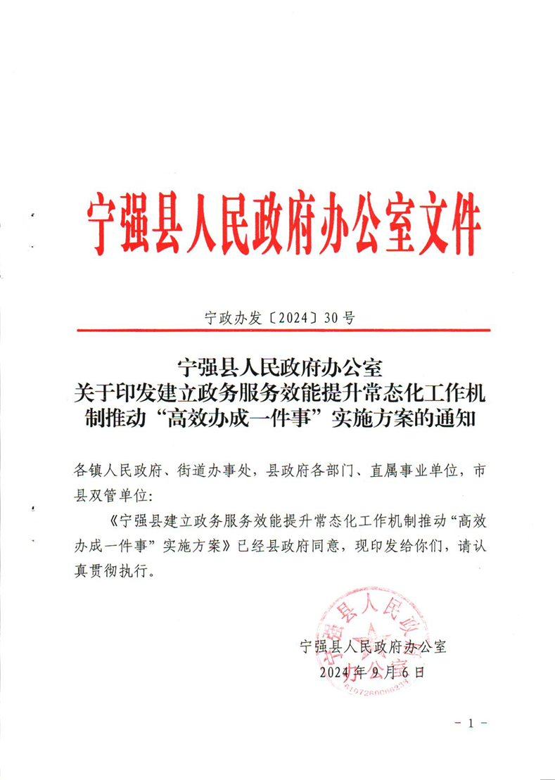 寧強縣人民政府辦公室關于印發(fā)建立政務服務效能提升常態(tài)化工作機制推動高效辦成一件事實施方案的通知