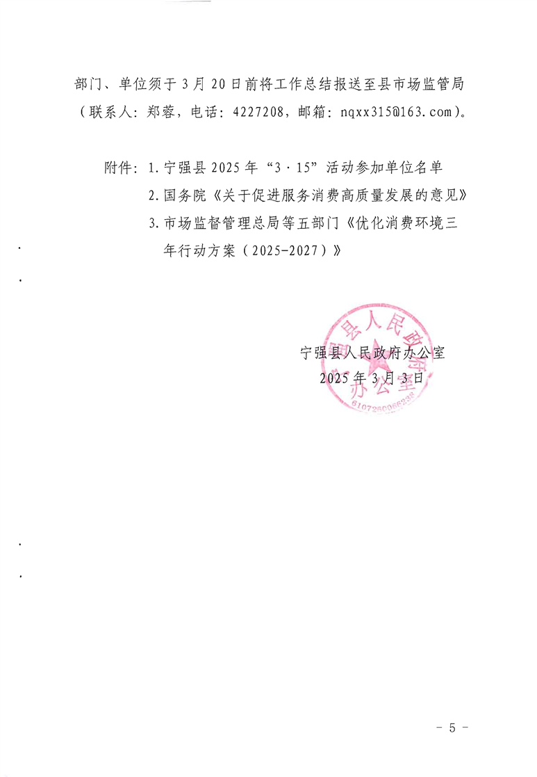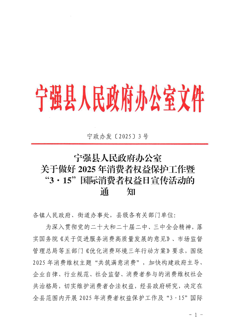 寧強縣人民政府辦公室關于做好2025年消費者權益保護工作暨“3·15”國際消費者權益日宣傳活動的通知