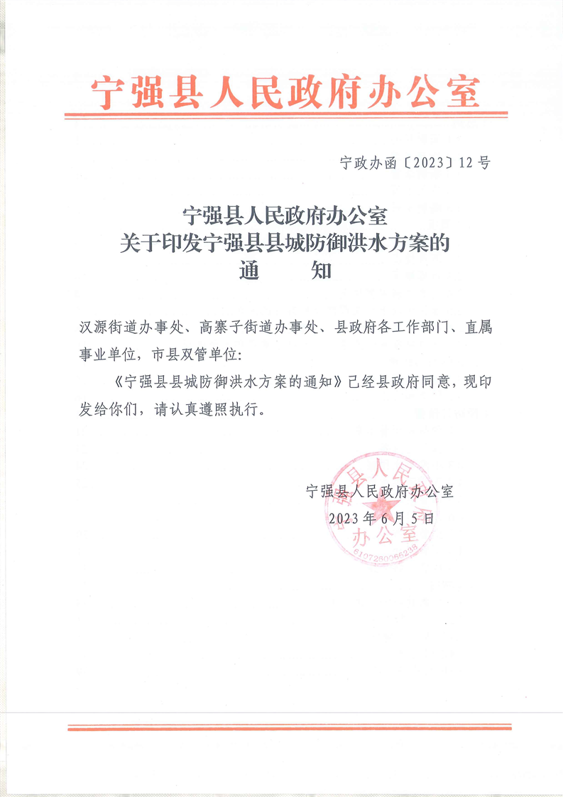 寧政辦函〔2023〕12號關于印發寧強縣縣城防御洪水方案的通知