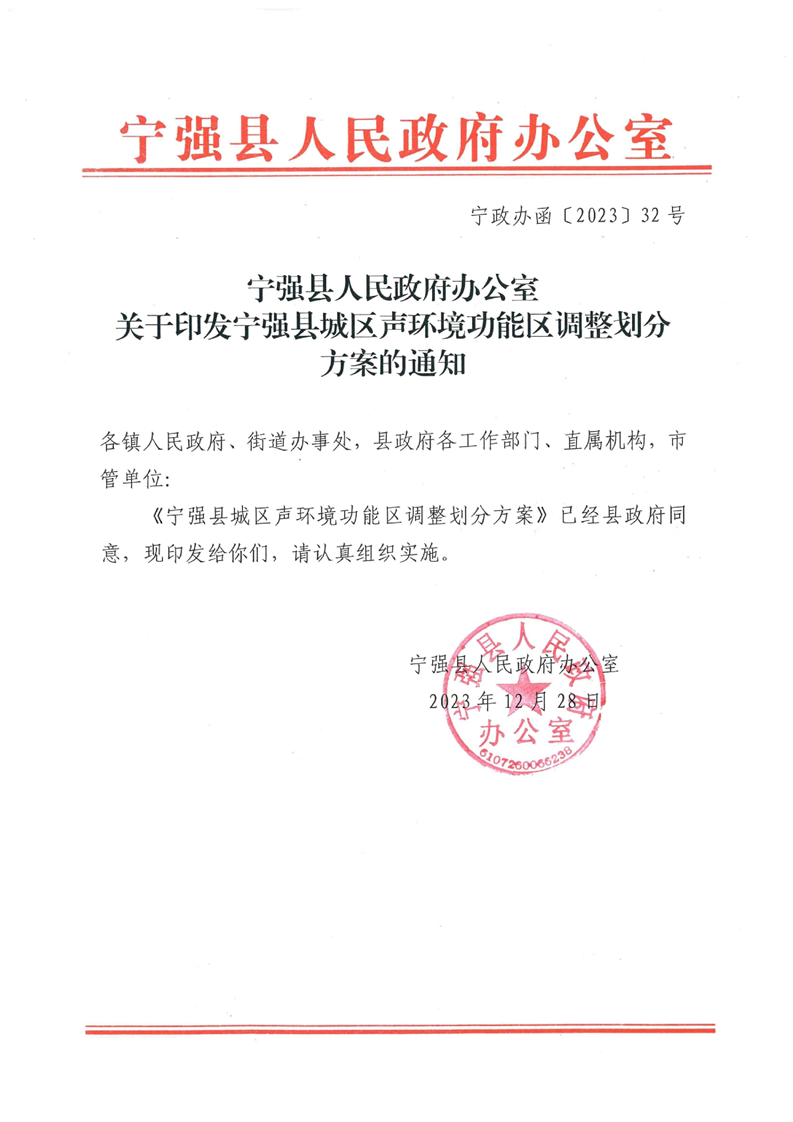 寧強縣人民政府辦公室關于印發寧強縣城區聲環境功能區調整劃分方案的通知
