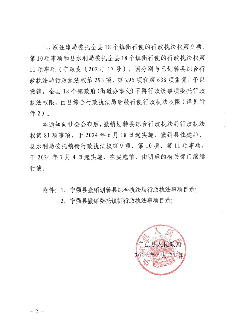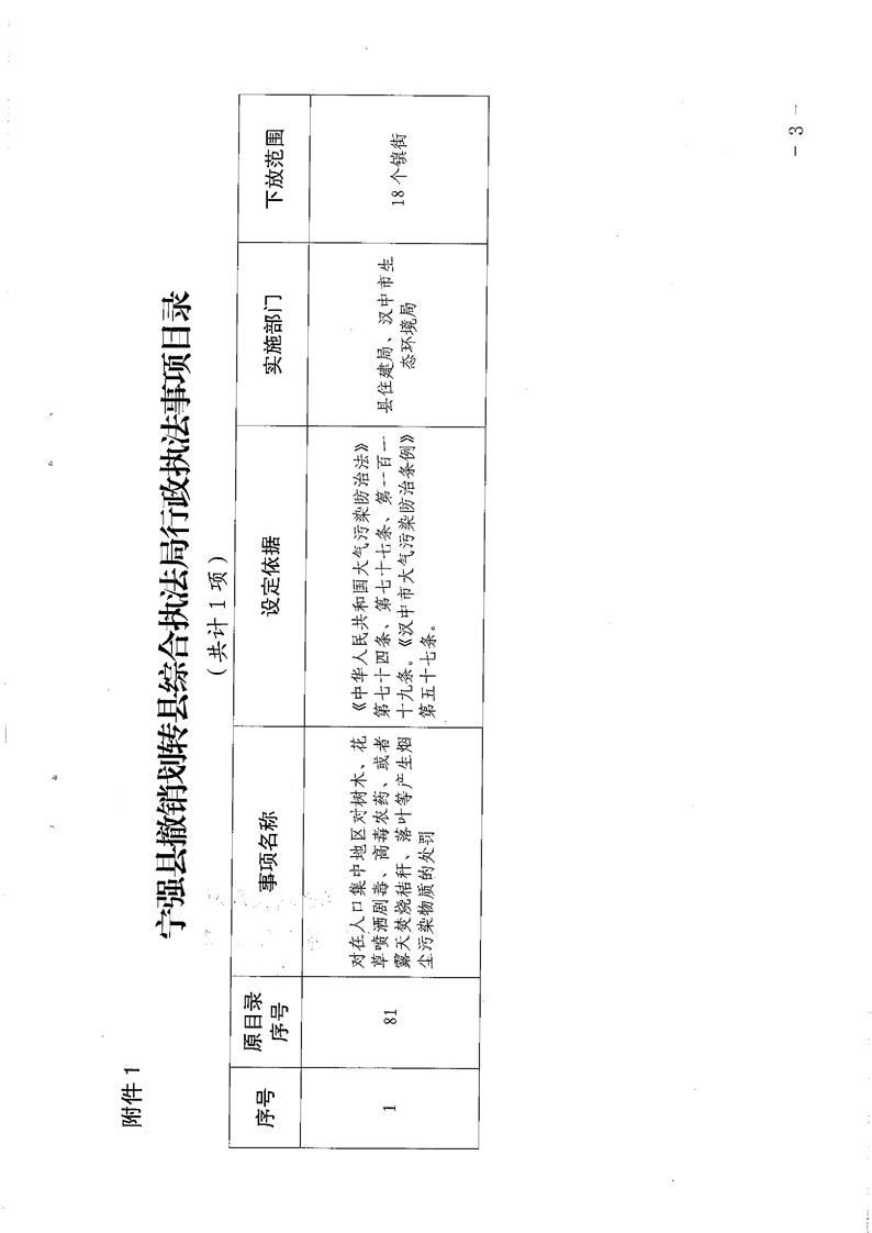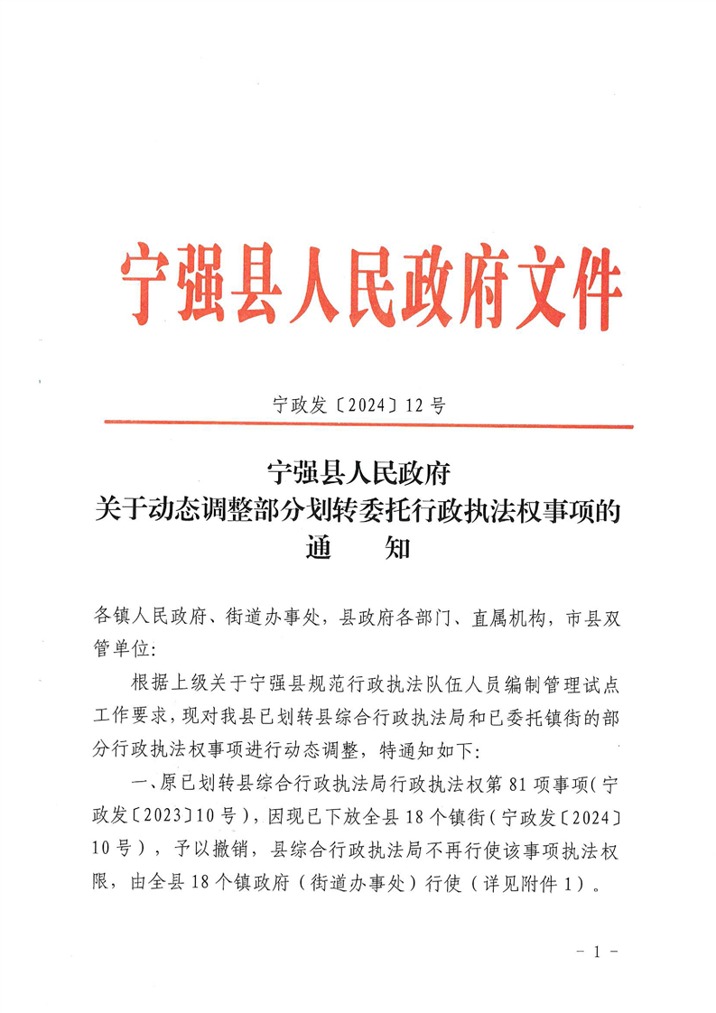 寧強縣人民政府關(guān)于動態(tài)調(diào)整部分劃轉(zhuǎn)委托行政執(zhí)法事項的通知