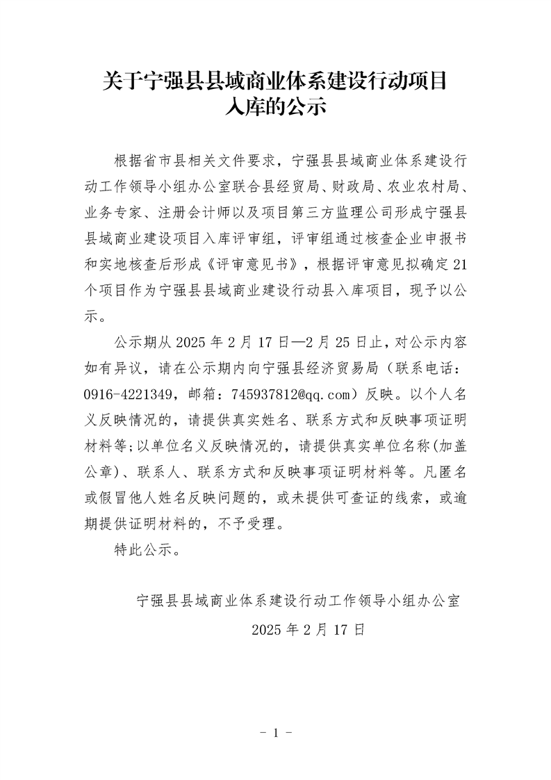 關于寧強縣縣域商業(yè)體系建設行動項目入庫的公示